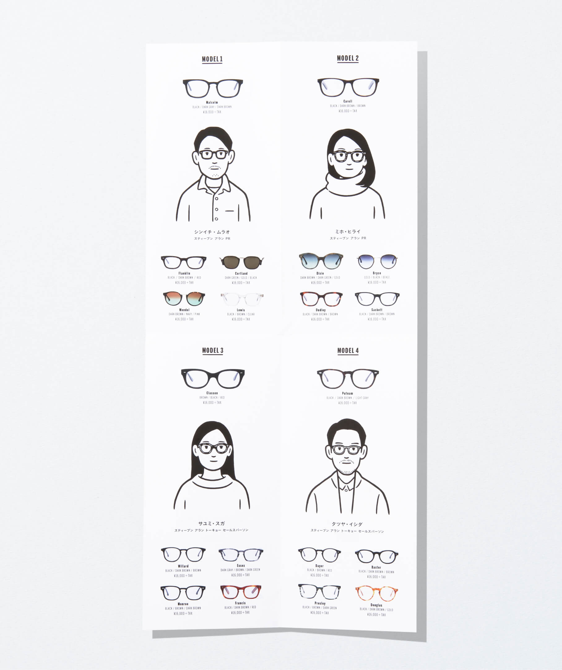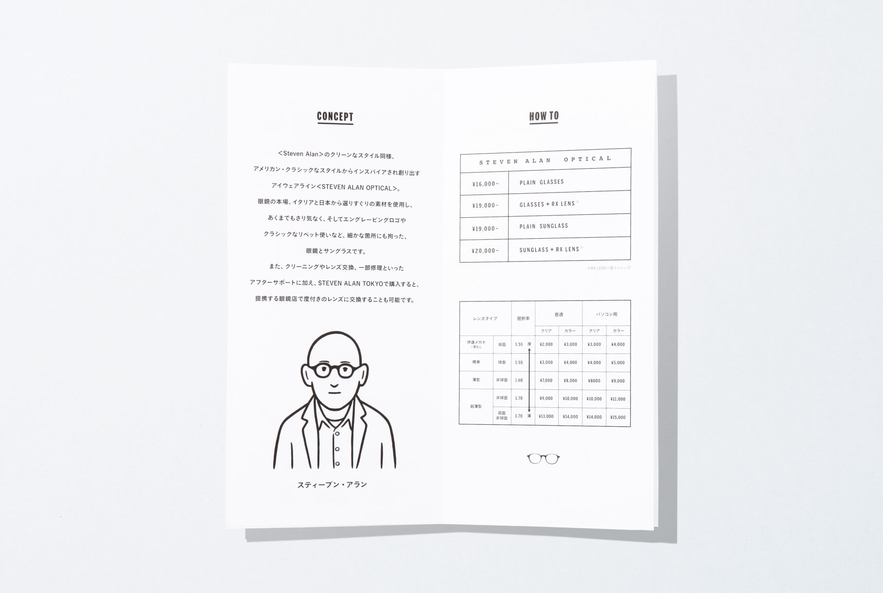 アメリカ・ニューヨークを拠点とし、ナチュラルで洗練された衣服や雑貨、アクセサリーを扱うセレクトショップ「STEVEN ALAN -スティーブン アラン-」のオリジナルオプティカルライン「STEVEN ALAN OPTICAL -スティーブン アラン オプティカル-」の店頭配布用リーフレットを作成しました。